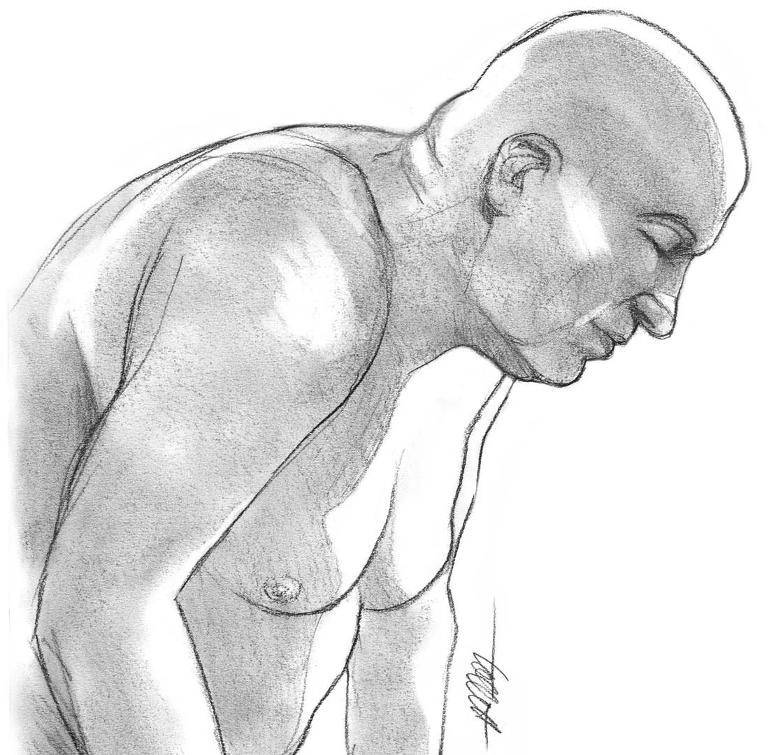 Dramatic lighting on the pose, from my side of the room, lots of shadow,