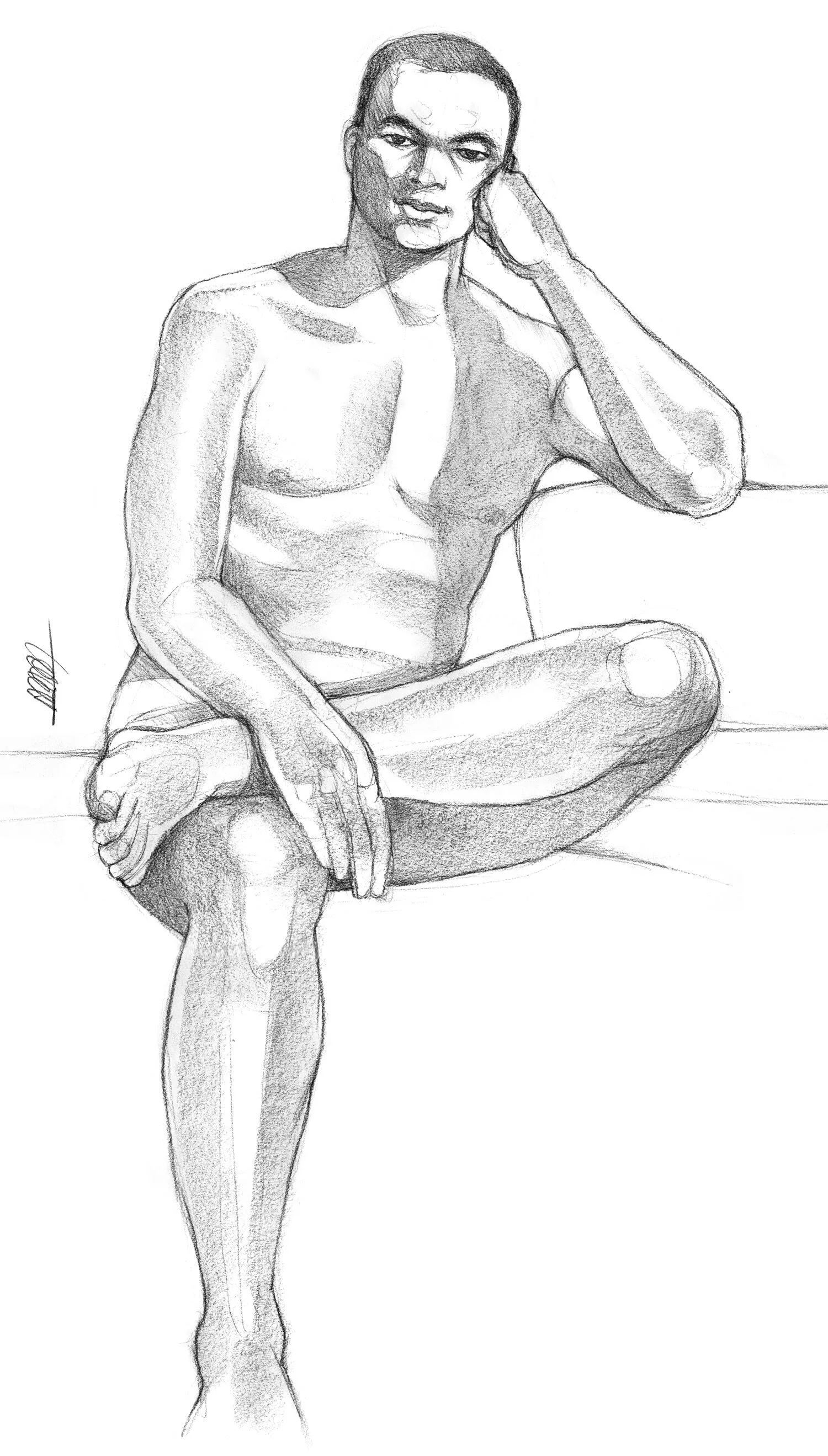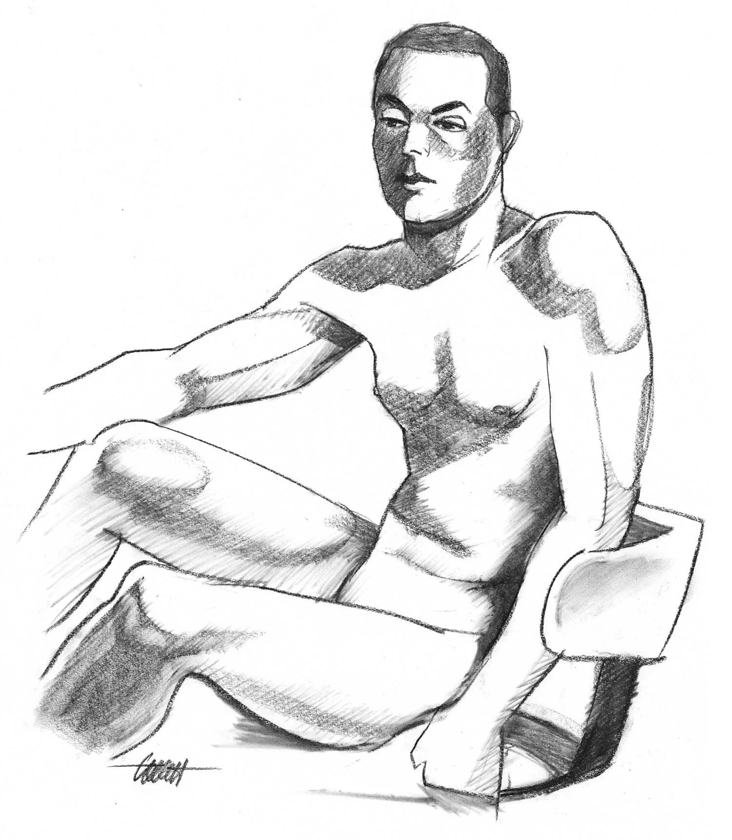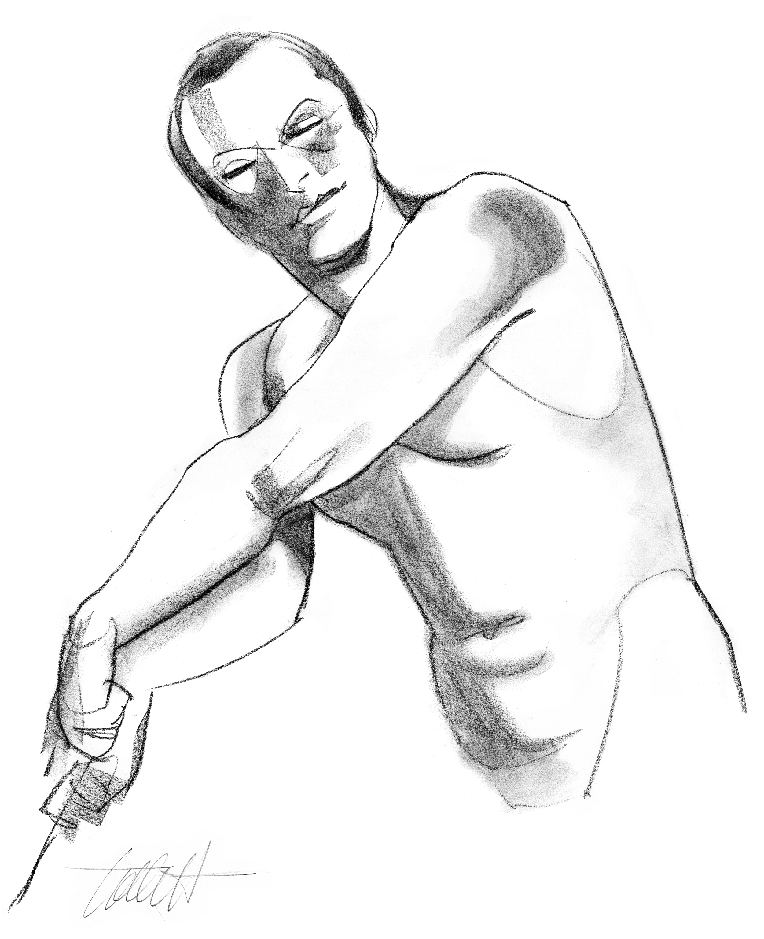 Two of these drawings (the top two) were short poses, 6 or 7 minutes. That means you have to draw pretty fast to capture the pose and good luck with making it look like the model, because I’m not even going to try. Occasionally (pretty often, actually) I get hung up on the face and don’t get much of the pose before time is up. The bottom drawing was a 40-minute pose. That’s not much time, but it’s a lot more than those short poses. At least I get enough of the figure roughed in to fake some shading later.