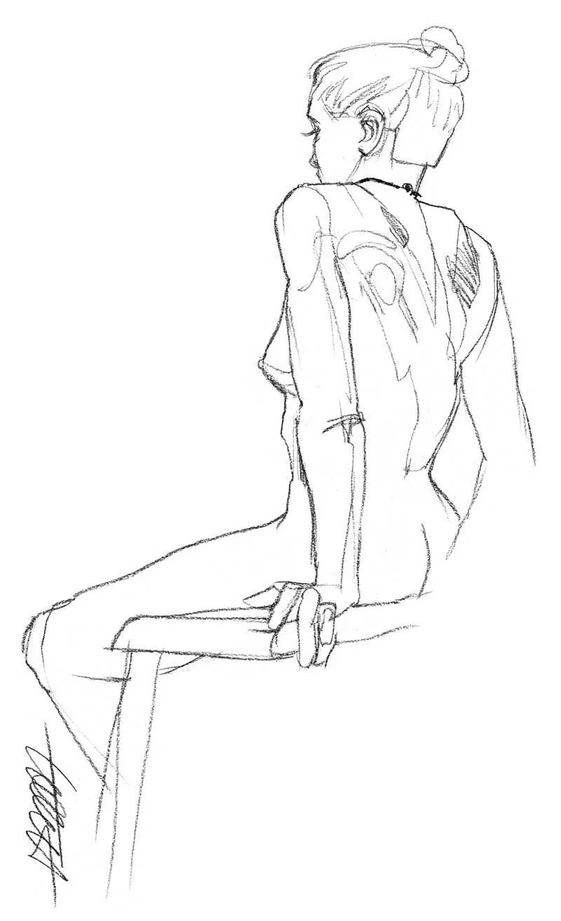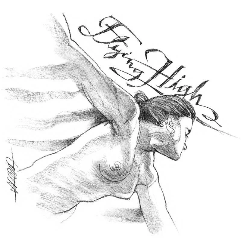 I didn’t have time to finish this short pose at the most recent Tuesday Night Drawing session. The unfinished drawing looked like the model was flying so I added some grungy calligraphy to the sketch. I’m always fighting the temptation to add typography to images, due partly to a background of many years spent as an art director/designer in the advertising world — but mainly because it’s fun.