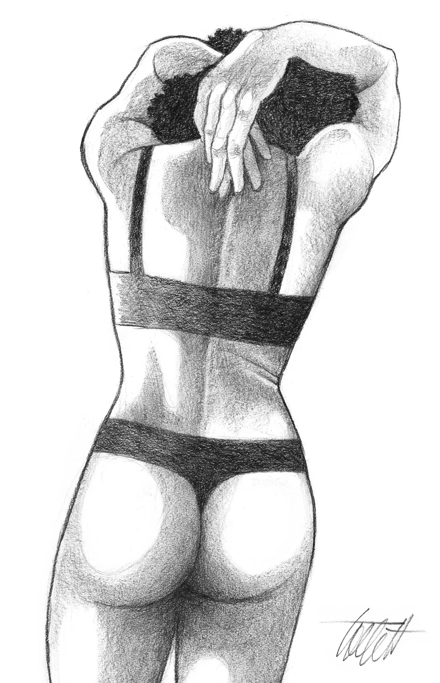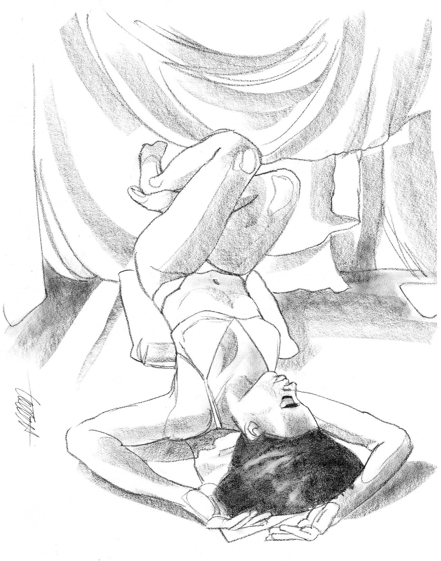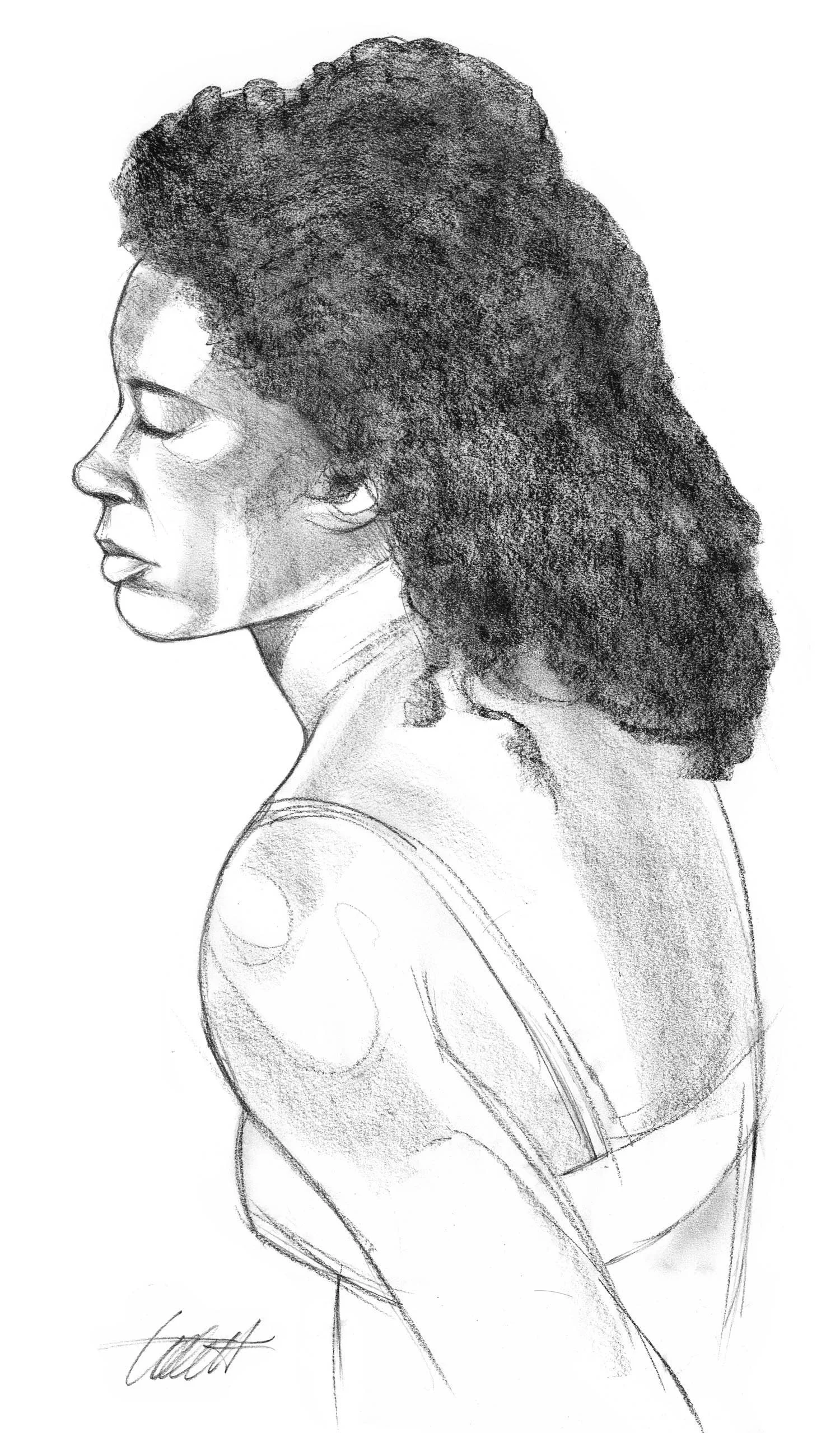 Woman in Red Attire (original charcoal drawing)